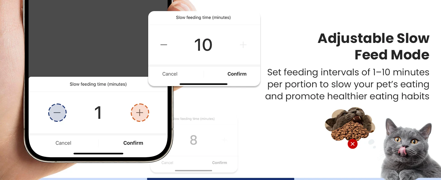 3.Double alimentation et appel d'alimentation personnalisé : pour une utilisation ininterrompue, le chargeur fonctionne avec un adaptateur secteur et 4 piles AA non rechargeables (non incluses), qui commutent automatiquement pendant les pannes de courant.La batterie de secours de 45 jours garantit une alimentation fiable même en cas de panne de courant.Vous pouvez également enregistrer un appel vocal personnalisé de 10 secondes pour réconforter vos animaux de compagnie, renforçant ainsi votre lien tout en leur invitant à manger.