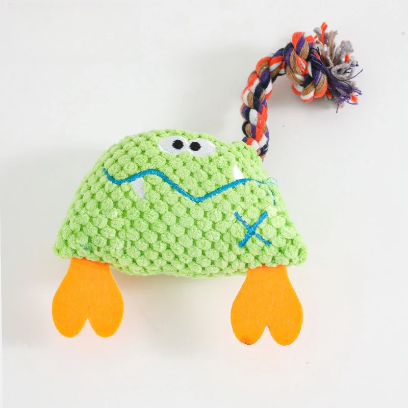Ce jouet est le compagnon idéal des petits et moyens chiens. Fabriqué en Velours Côtelé (Corduroy), il offre une texture unique que les chiens adorent mâcher et transporter. Il est parfait pour des heures de jeu et d'entraînement, grâce à son couineur intégré qui garantit une stimulation constante.