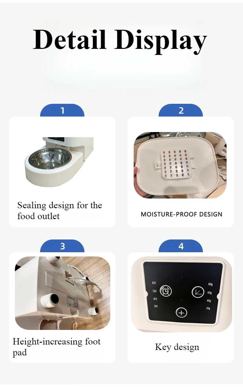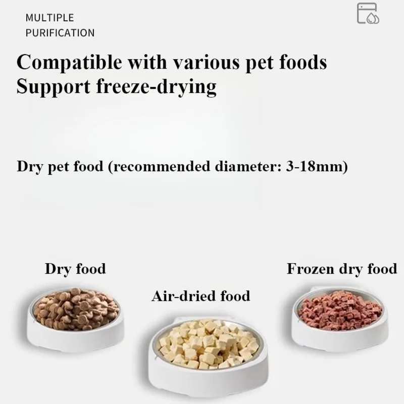 4.Nourriture compatible pour animaux de compagnie : Nourriture sèche pour animaux de compagnie (diamètre recommandé : 3-18n)