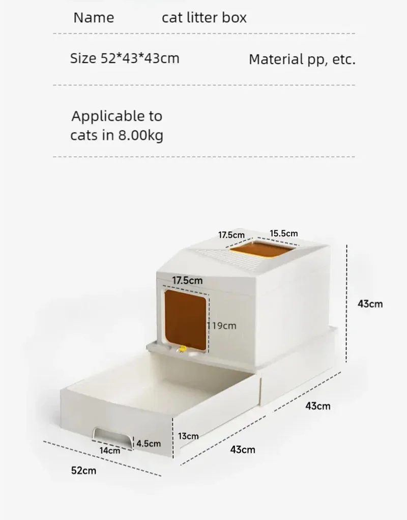 • Lit pour Chat Amovible : Le bac peut être retiré facilement (souvent par un tiroir ou un simple retrait du couvercle), le rendant amovible et simple à nettoyer.
