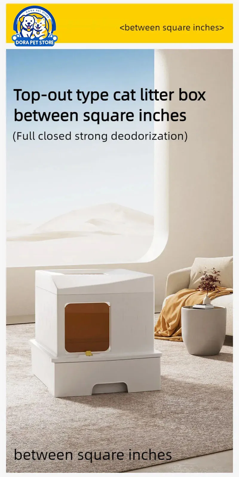 Grande Boîte à Litière Entièrement Fermée | Entrée Basse, Sortie Supérieure (Double Accès Anti-Projection), Anti-Odeur & Amovi
