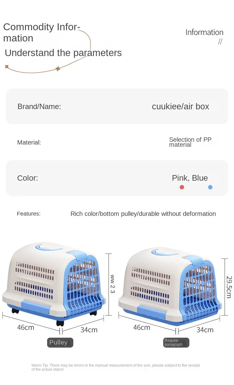 Nom du Produit : Boîte de voyage pour animaux de compagnie (Pet Air Travel Box)