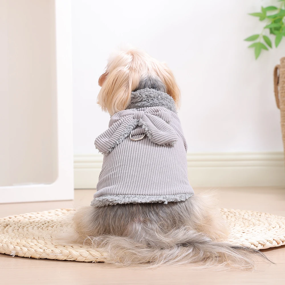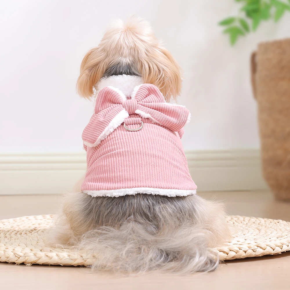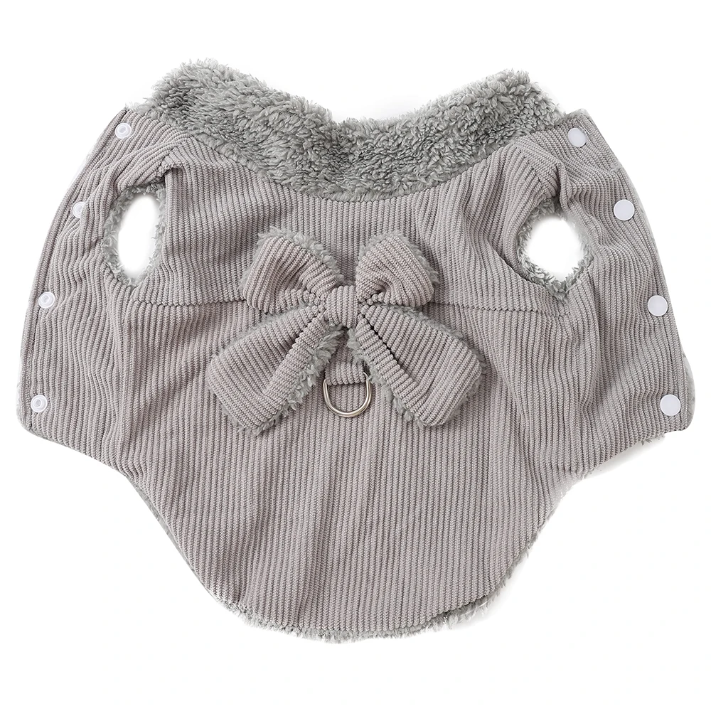 Manteau d’Hiver en Velours Côtelé avec Nœud  – Doux & Chaud | Avec Anneau en D | Pour Chats & Petits Chiens (XS–XL)